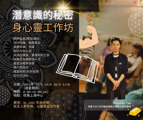 多謝Wayman 帶我去體驗維度探索之旅,整個過程都非常放鬆舒適念感覺就好像進入了一個空間,有好多畫面聲音出現我面前,起初都有點猶豫,原來是我的潛意識很想去太空探索感受,最深刻的感覺是我回到剛剛出世的時候,全身紅紅,頭髮都是濕的,我一直在大喊的樣子,看到我媽媽對我的愛,那刻被幸福包圍着感動到落淚!